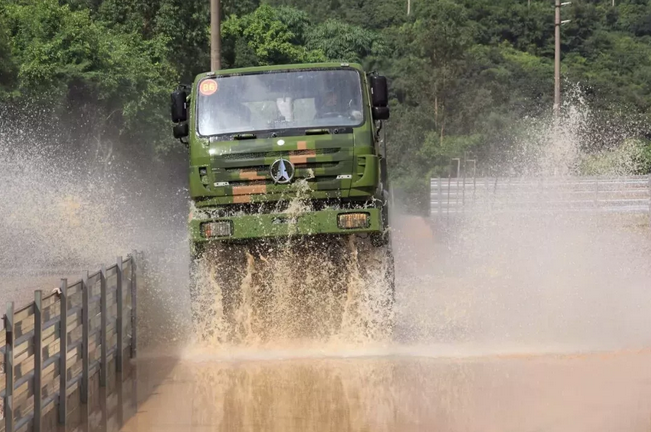 水障礙路段,指揮車需通過0.5米深的水路,運輸車要通過1.7米深的水路,并避免在該路段因熄火、后滑、擦碰邊墻等犯規動作造成扣分。