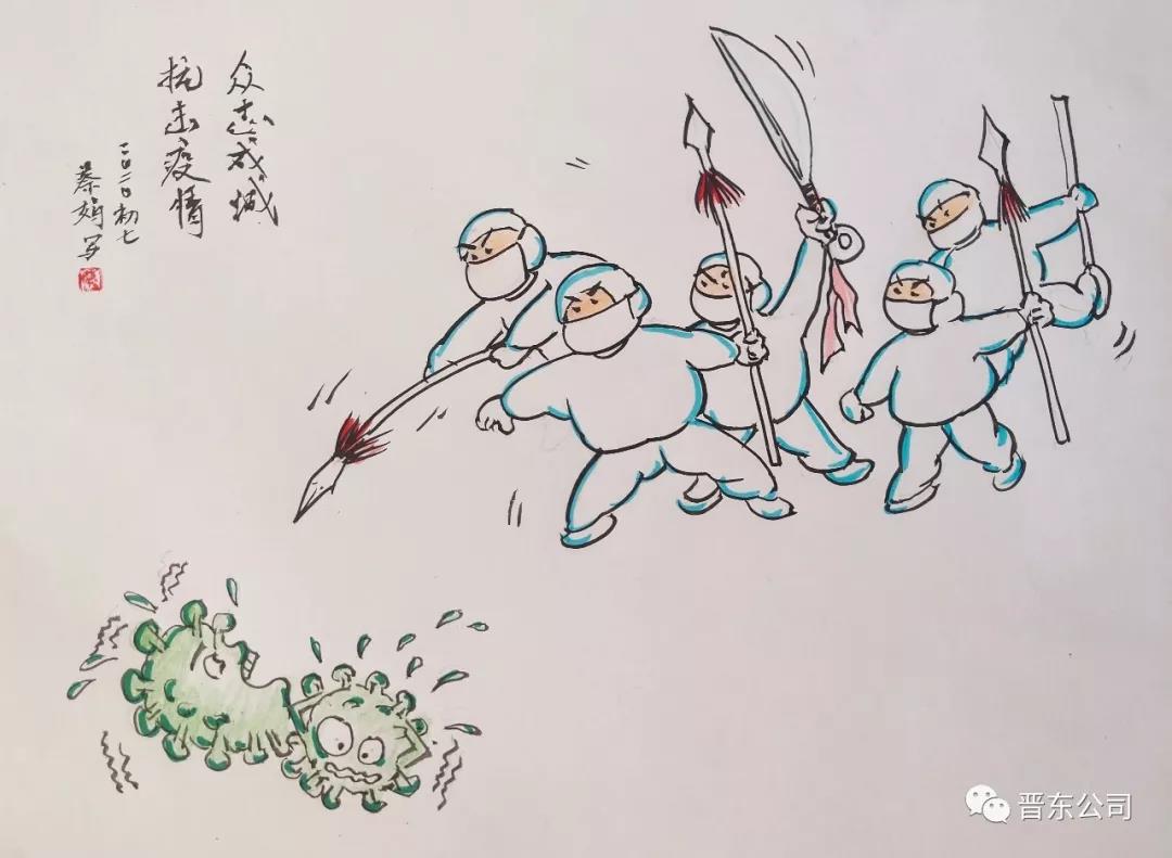 特能集團晉東公司所屬包裝材料公司職工、退伍軍人周治國自費購買100公斤消毒液和100個口罩,免費送給周圍居民群眾,受到大家好評點贊!后續購買的300個口罩正在運輸中。晉東青年女兵工蔡娟、吳瓊精心創作“眾志成城、共抗疫情”系列主題漫畫,請微觀。
