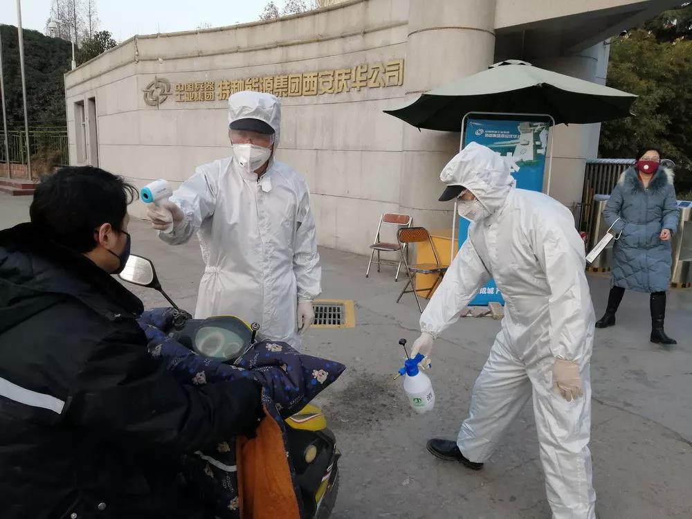 北化研究院集團瀘州北方公司建立了兩級值班聯絡機制,緊急采購口罩、消毒液、電子體溫測溫儀、消毒噴壺等防控物品,對出入人員進行體溫檢測,組織對各區域進行清潔消毒、通風透氣。同時,為化工苑社區、臨江苑社區、瀘化醫院、羅漢街道辦提供酒精以助消毒。對堅守崗位員工實行集中送餐、分餐制或員工自行返家用餐,并利用公司微信公眾號、廣播等媒體加強防控措施宣傳和輿論引導。