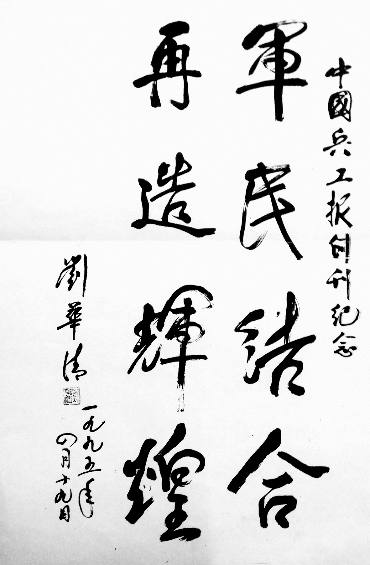 (下圖為劉華清的題詞:軍民結合,再造輝煌。)