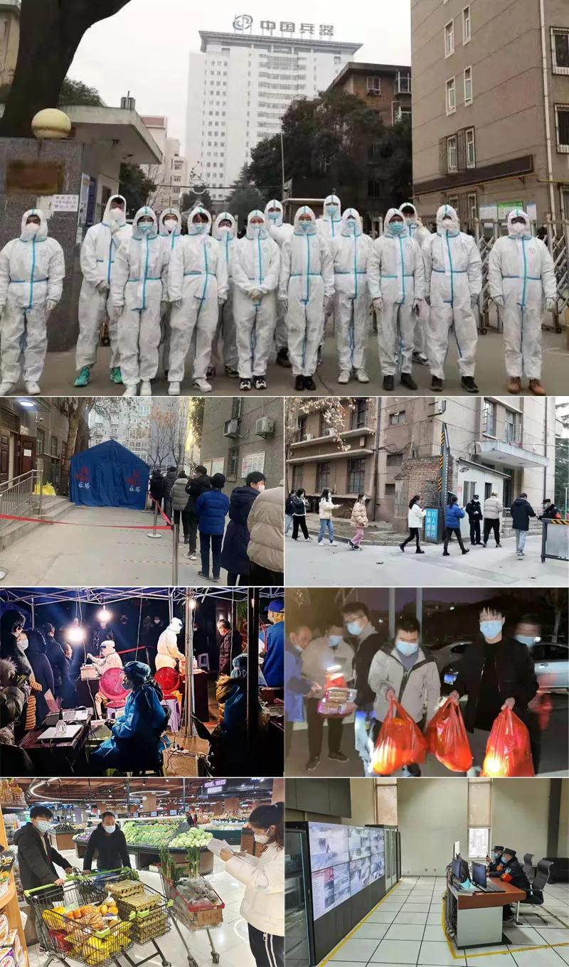 北化研究院集團西安惠安公司為避免社區臨時出入人員與上班職工的接觸風險,聯系地方政府開辟綠色通道,由公司派志愿者值班輪守。為解決部分職工就餐問題,惠安賓館為職工開辟就餐綠色通道,嚴格按照防疫要求,在不同地方分批領餐,杜絕聚集。惠安醫院承擔9個核酸采集點的核酸采集工作,醫護人員放棄休息,在冬日的寒風中連續五天奮戰在抗疫一線,共計采集核酸檢測樣本7萬人次。