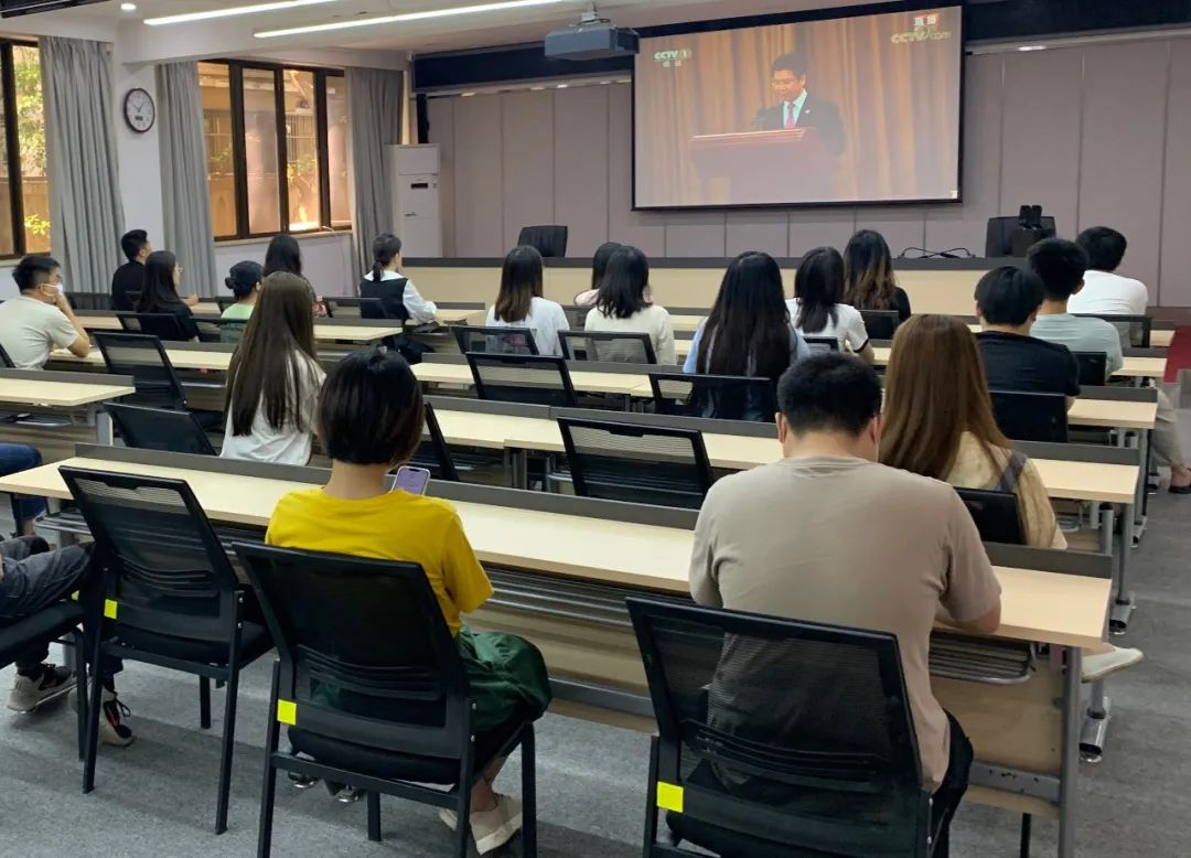 ▲北化研究院集團(tuán)團(tuán)委組織團(tuán)員青年收看現(xiàn)場(chǎng)直播