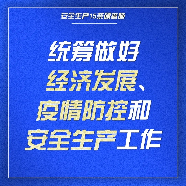 為認真貫徹落實習近平總書記關于安全生產重要指示精神和黨中央、國務院決策部署,近日,國務院安委會梳理相關法律法規已有規定、以往管用舉措和近年來針對新情況采取的有效措施,制定了進一步強化安全生產責任落實、堅決防范遏制重特大事故的十五條硬措施,部署發動各方面力量全力抓好安全防范工作,為黨的二十大勝利召開創造良好安全環境。