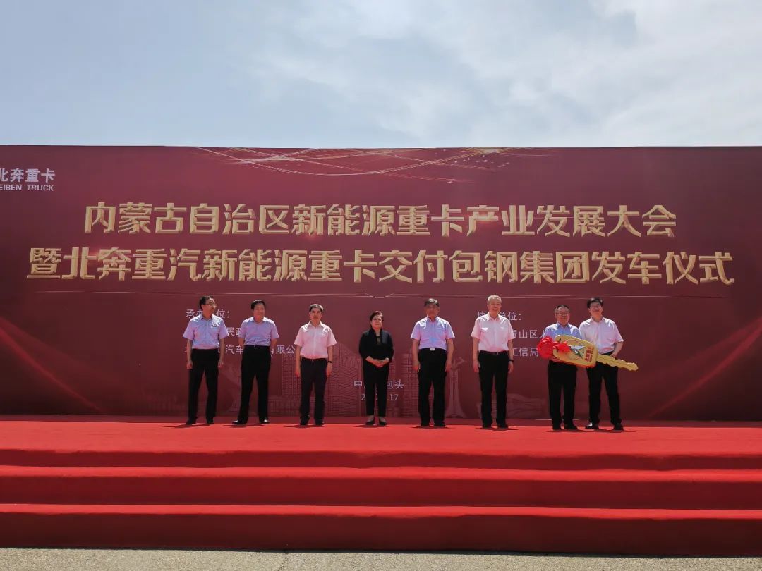 6月17日,劉大山出席內蒙古自治區新能源重卡產業發展大會并致辭。劉大山指出,兵器工業集團始終把內蒙古自治區作為重要的科研、生產、試驗基地,高度重視與內蒙古自治區的務實合作,著力推動駐蒙兵工企業更好融入地方經濟社會發展。北奔重汽作為駐蒙兵工企業的重要代表和兵器工業集團唯一的重車企業,堅持在國家和地方發展大局中找準定位、強化擔當、主動作為,積極投身自治區綠色轉型發展。他強調,兵器工業集團期待與內蒙古自治區在科技協同創新、新能源汽車制造及推廣應用、應急救援裝備研制和口岸建設等領域全面深化合作,不斷激發新能源汽車產業發展的強大動能,打造產品、物流、金融、服務為一體的新能源發展生態體系,加快推動新能源重卡產業高端化、智能化、綠色化發展。