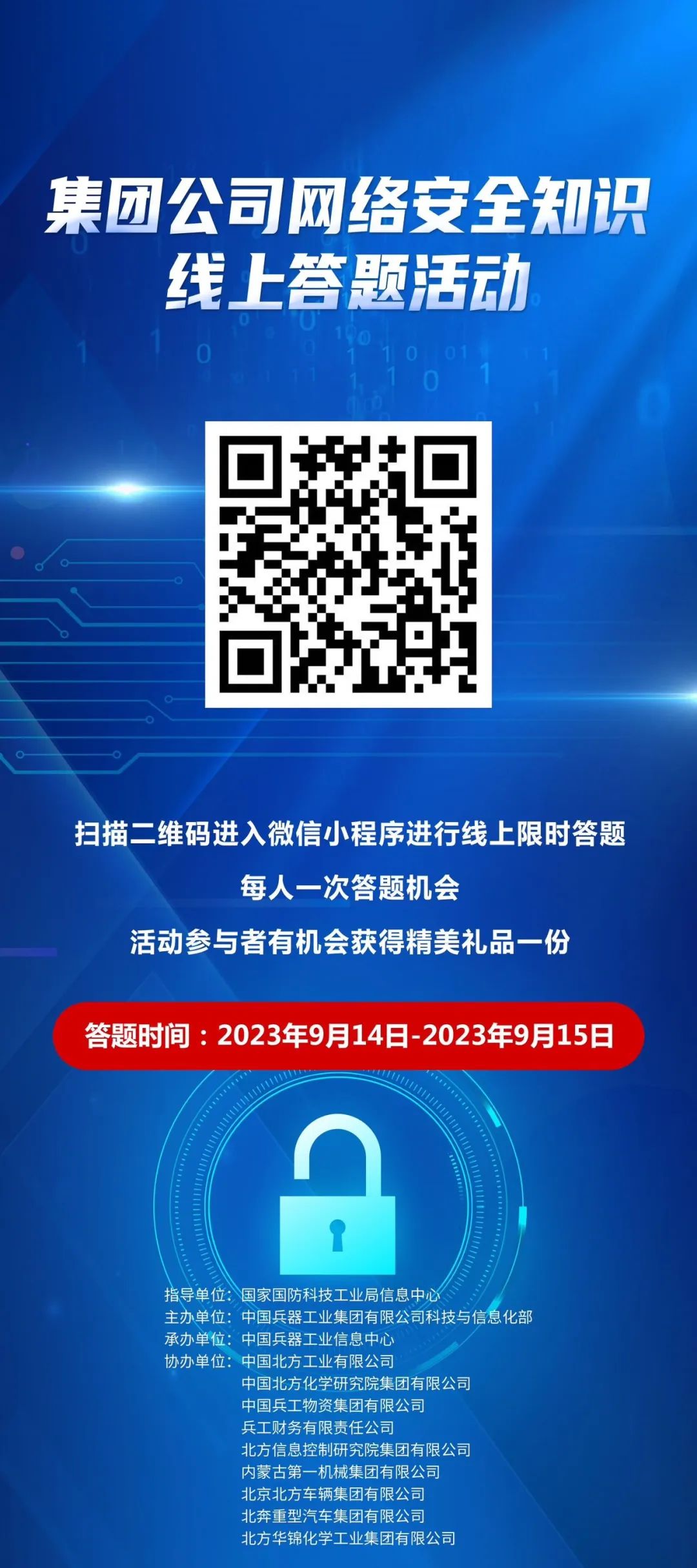 集團(tuán)公司網(wǎng)絡(luò)安全宣傳周系列活動(dòng)將持續(xù)開展,包括線上知識(shí)答題、網(wǎng)絡(luò)安全征文等。