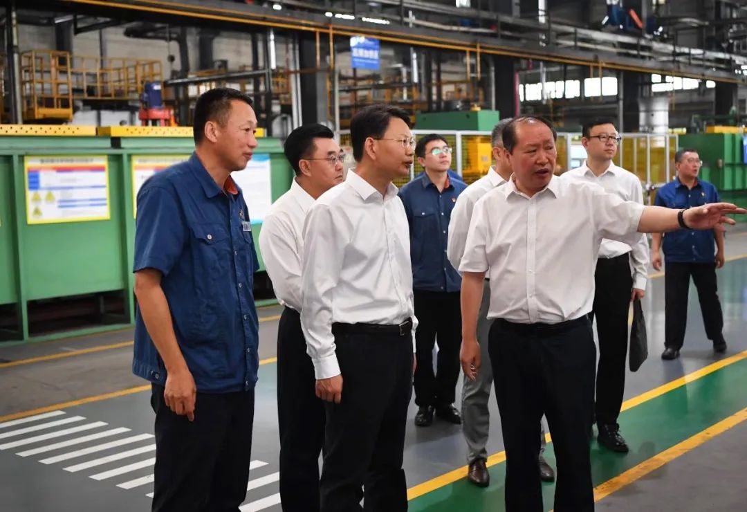 7月8日,中國兵器工業集團有限公司黨組書記、董事長程福波到東北工業集團、吉林江機調研,集團公司黨組成員、總會計師張華一同調研。 程福波深入企業的生產車間、研發實驗室等現場,詳細了解生產經營、科技創新、安全質量、能力建設等情況,看望慰問一線員工,聽取總體情況和重點工作匯報,對兩家單位相關工作給予肯定。程福波強調,要深入學習貫徹習近平總書記關于發展國有經濟和武器裝備建設的重要論述精神,站在黨和國家、軍隊發展大局的高度謀劃工作、抓好落實;要慎終如始抓好黨紀學習教育各項任務,持續做好中央巡視整改;要充分發揮高端人才、科技帶頭人、青年科技人才和技能人才的帶動引領作用,激發全員創新活力;要進一步培育先進的企業文化,推動黨建工作和生產經營深度融合,以高質量黨建引領保障高質量發展。  程福波在東北工業集團調研