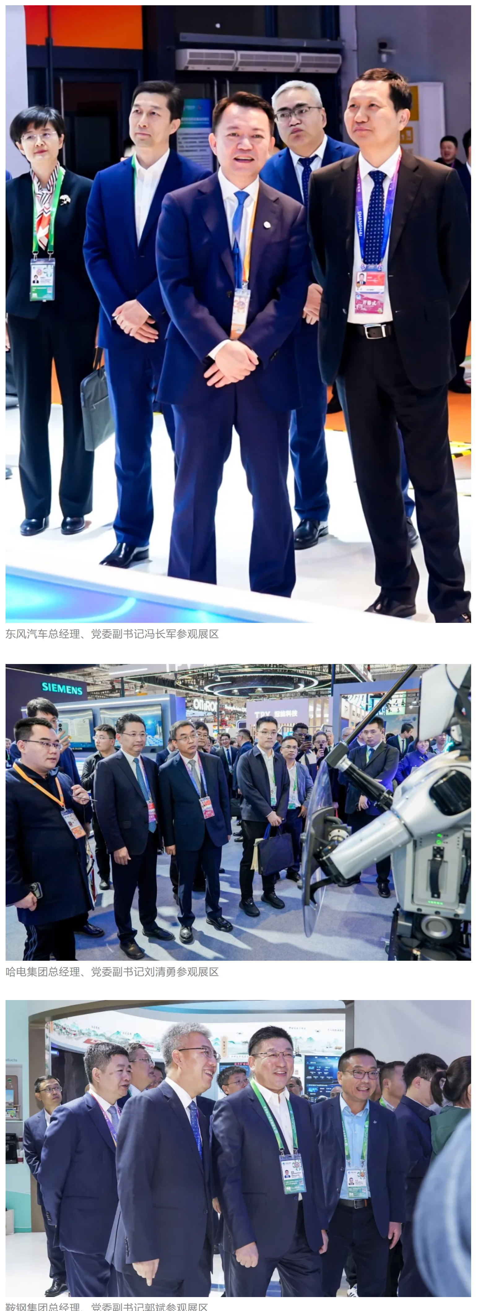 國家能源集團、東風汽車、哈電集團、鞍鋼集團、中鋁集團、通用技術集團、中國中車、中國長安汽車、中國電建等央企領導,工信部、國務院國資委、中國貿促會、陜西省、上海市、浙江省等國內政府部門領導以及國內外合作伙伴蒞臨集團公司組展展區參觀指導。對集團公司高質量共建“一帶一路”,與各國合作伙伴共享發展機遇、實現互利共贏給予高度評價。