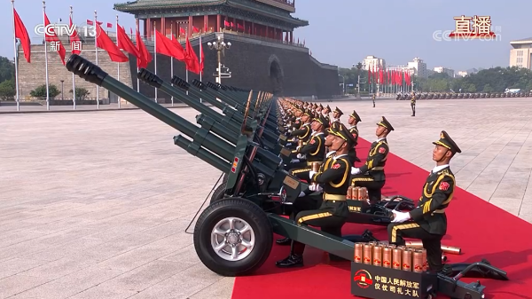 56門迎賓禮炮交替鳴放80響,鳴放時聲音渾厚、洪亮、穩定,作用可靠、使用安全、節能環保,以大氣外觀與優越性能詮釋“國之禮器”的威嚴風范。